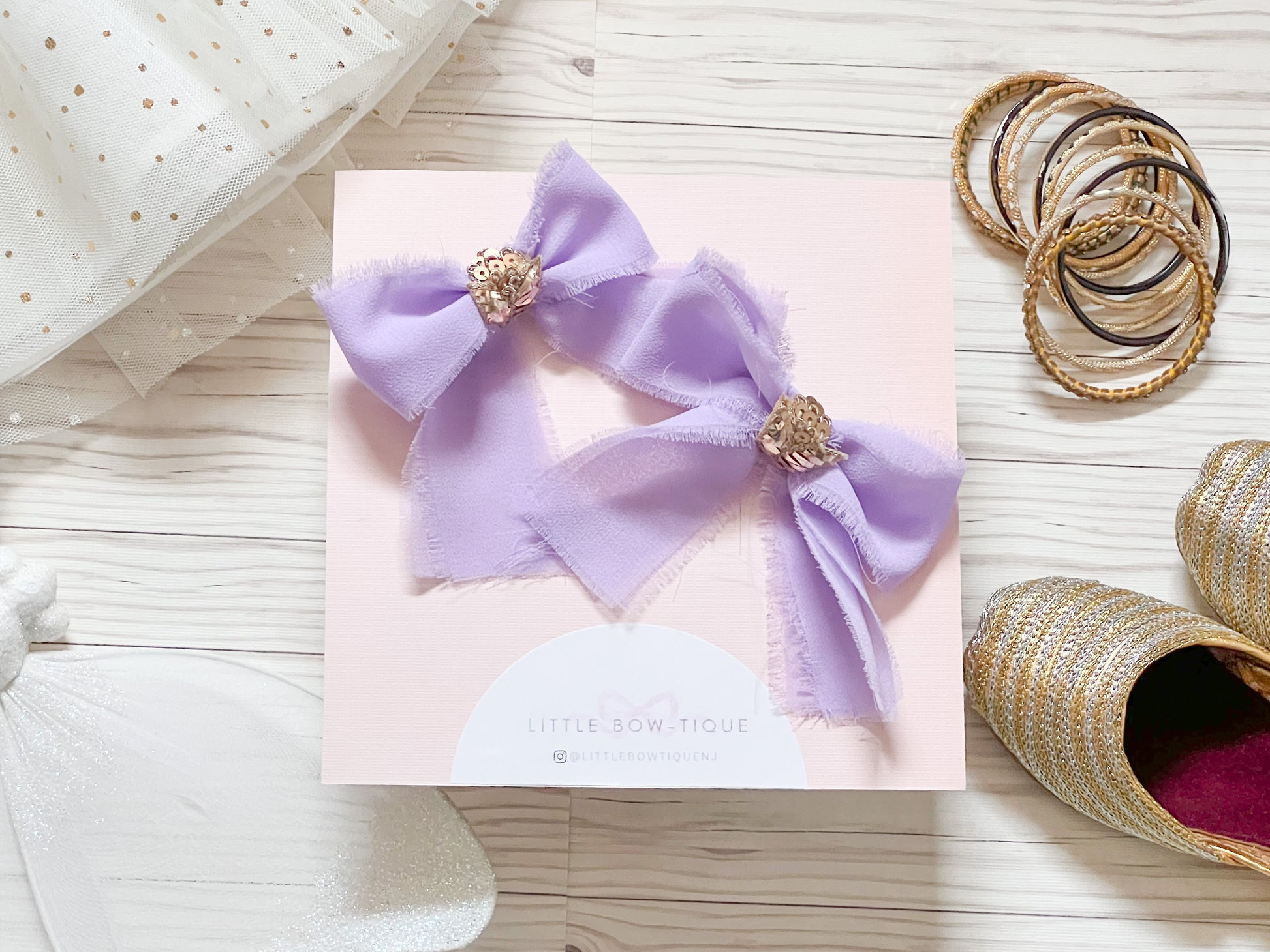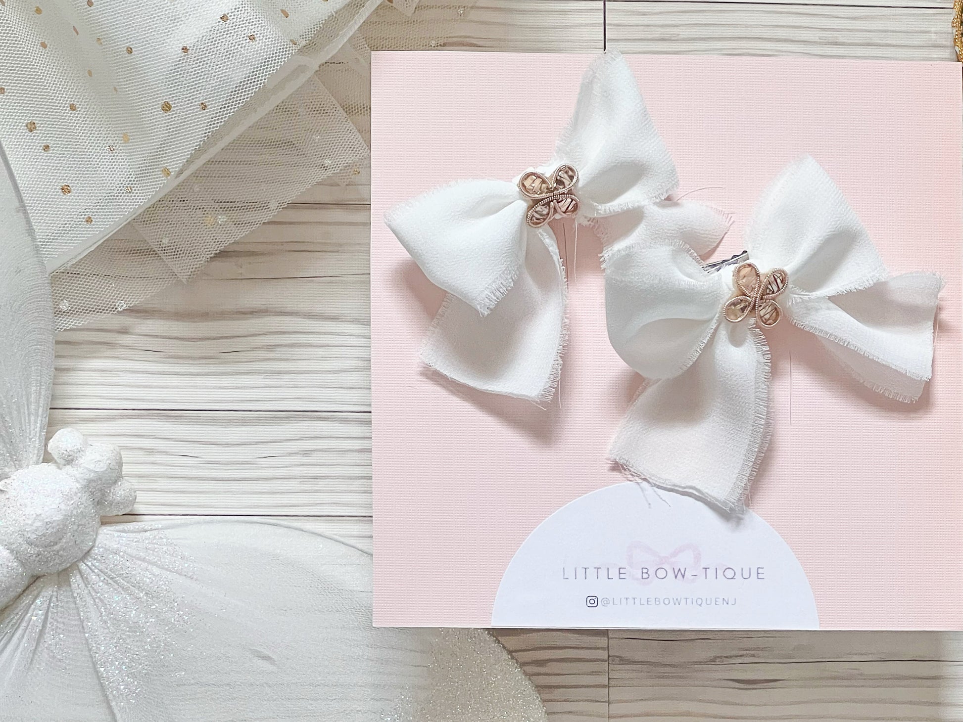 Hand cut chiffon bows with gold handmade embellishments. Please note - frayed edges are intentional.