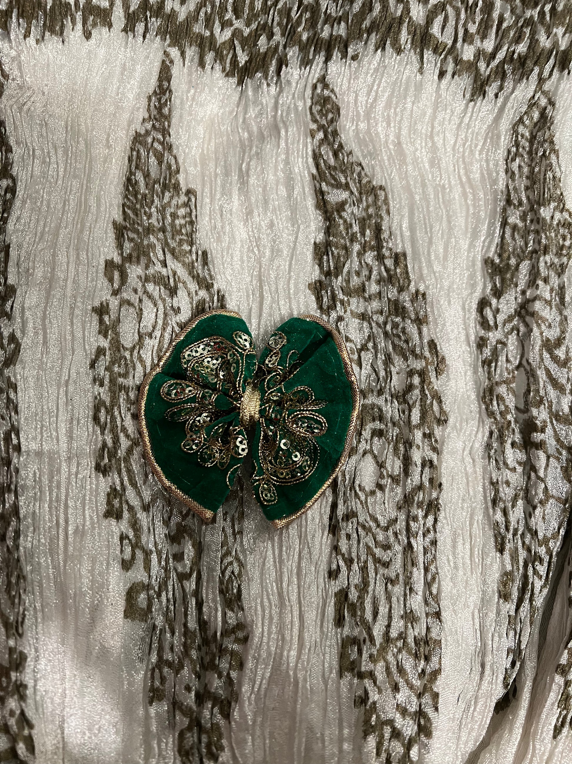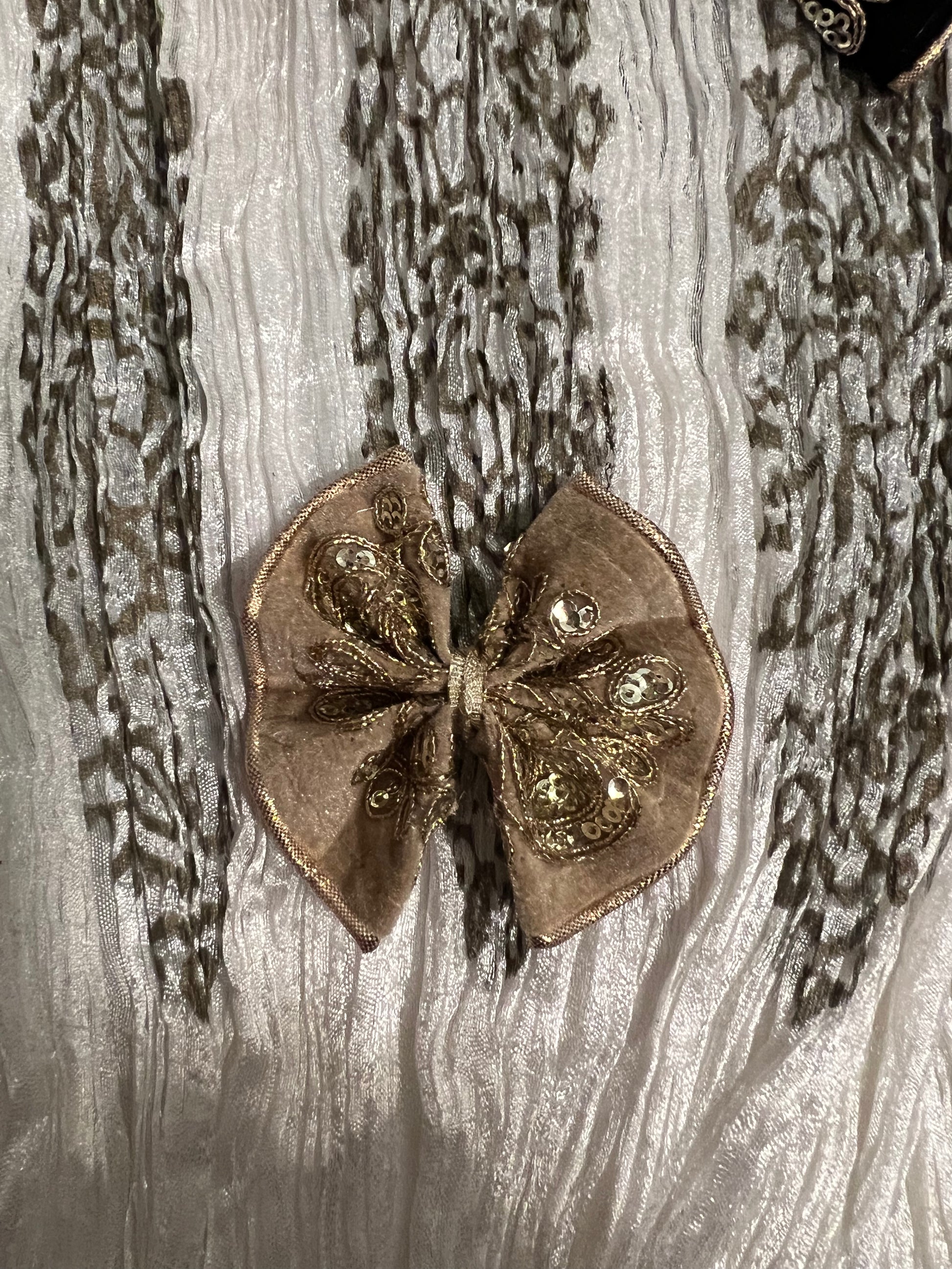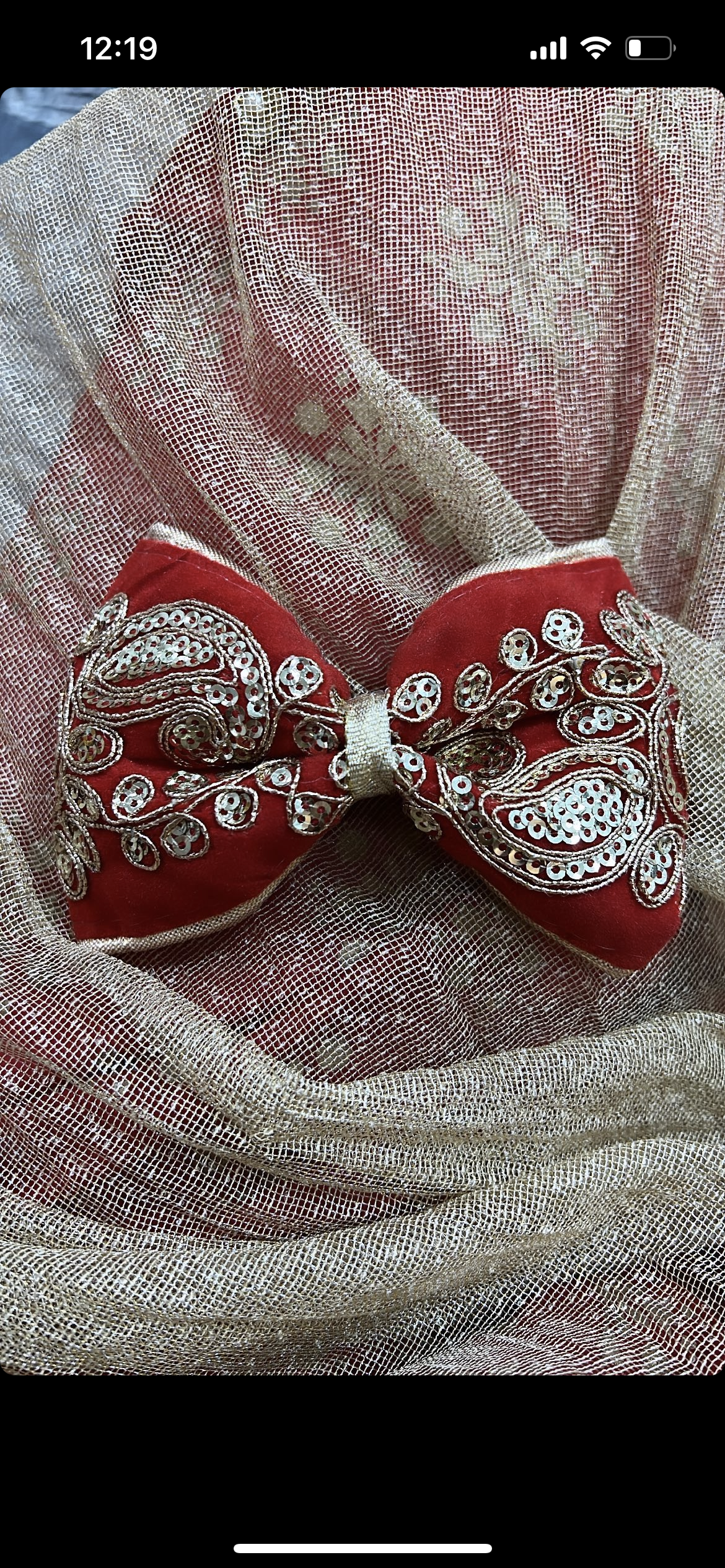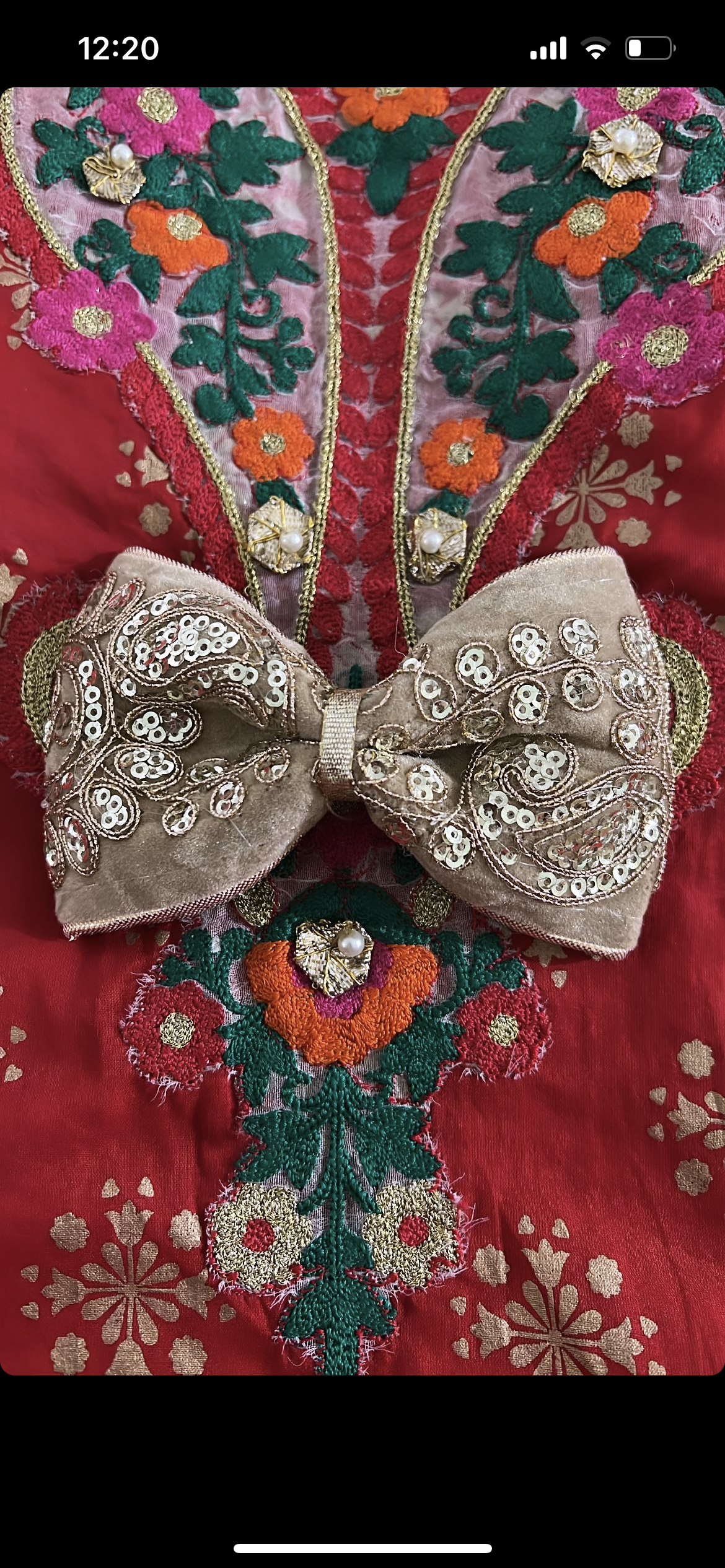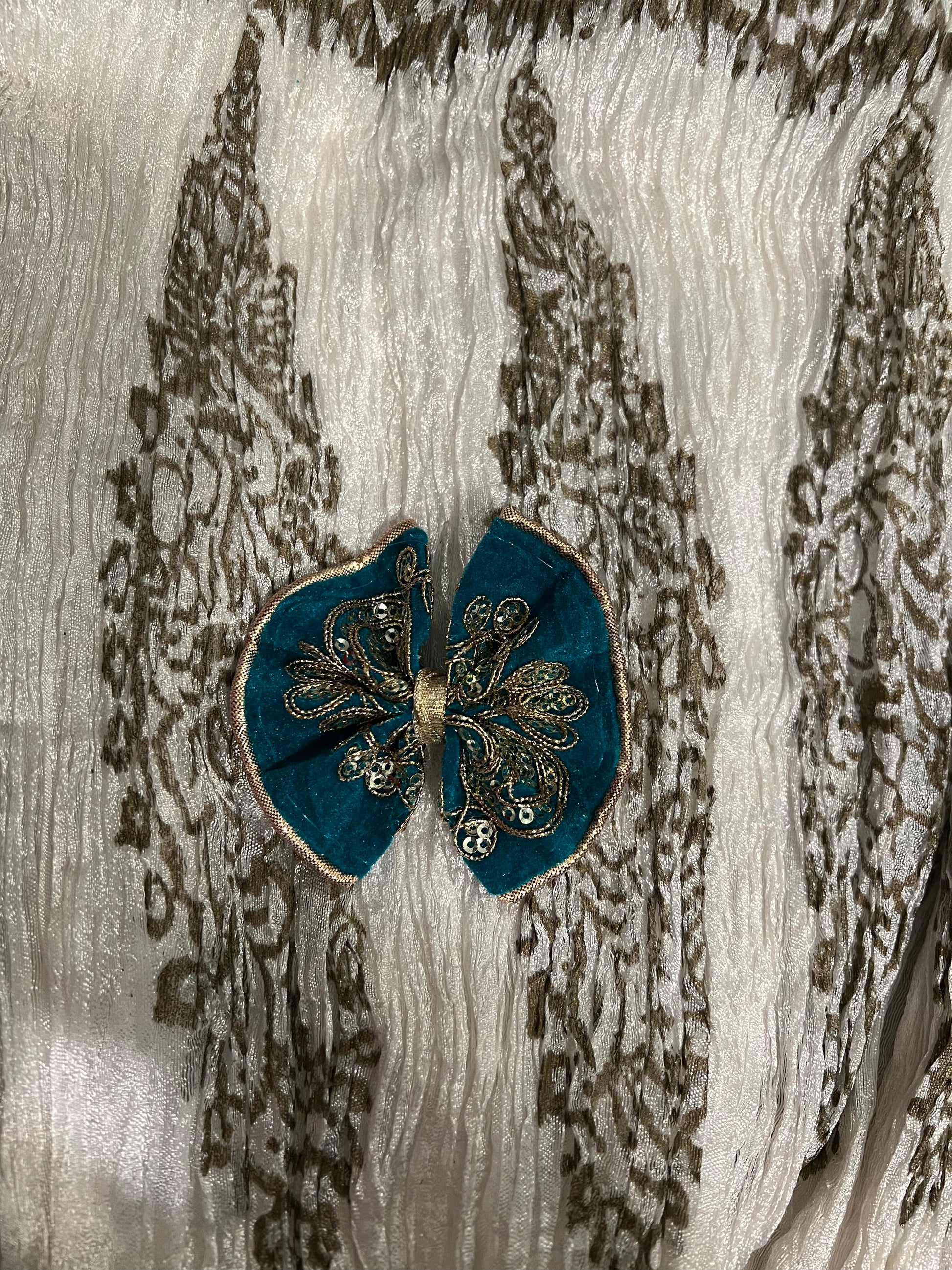 Hot pink velvet bow with gold embroidery and sequins