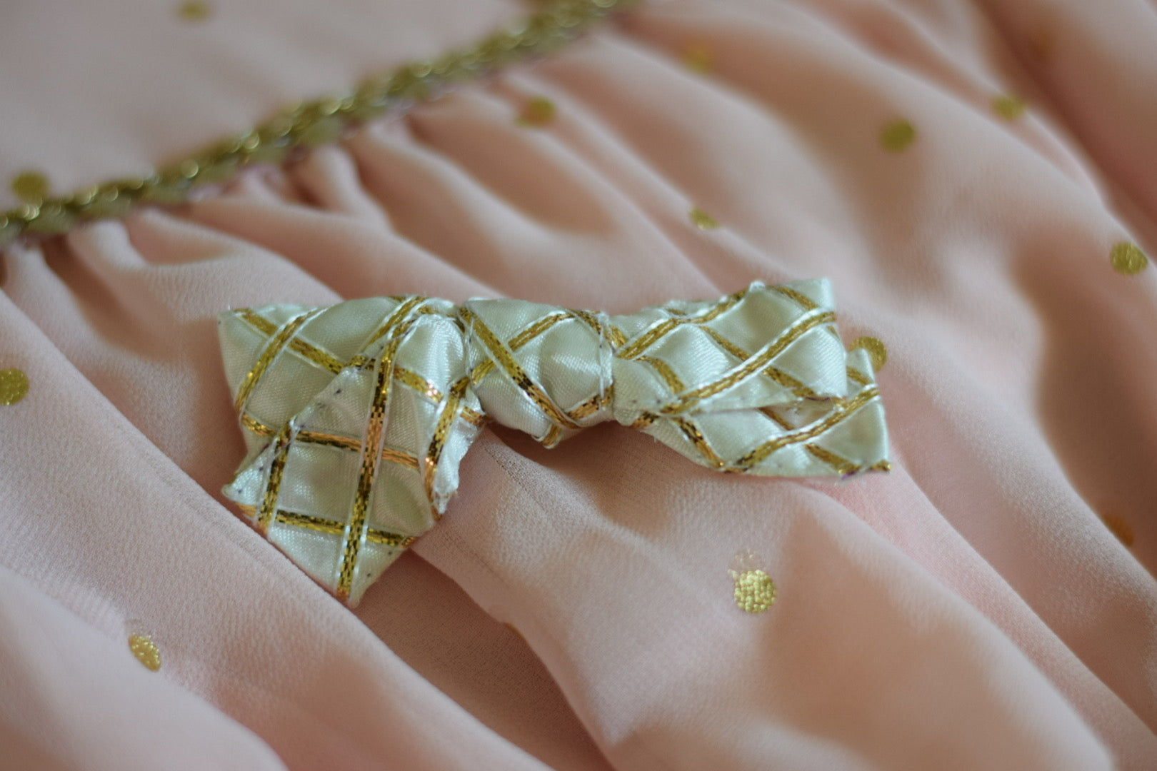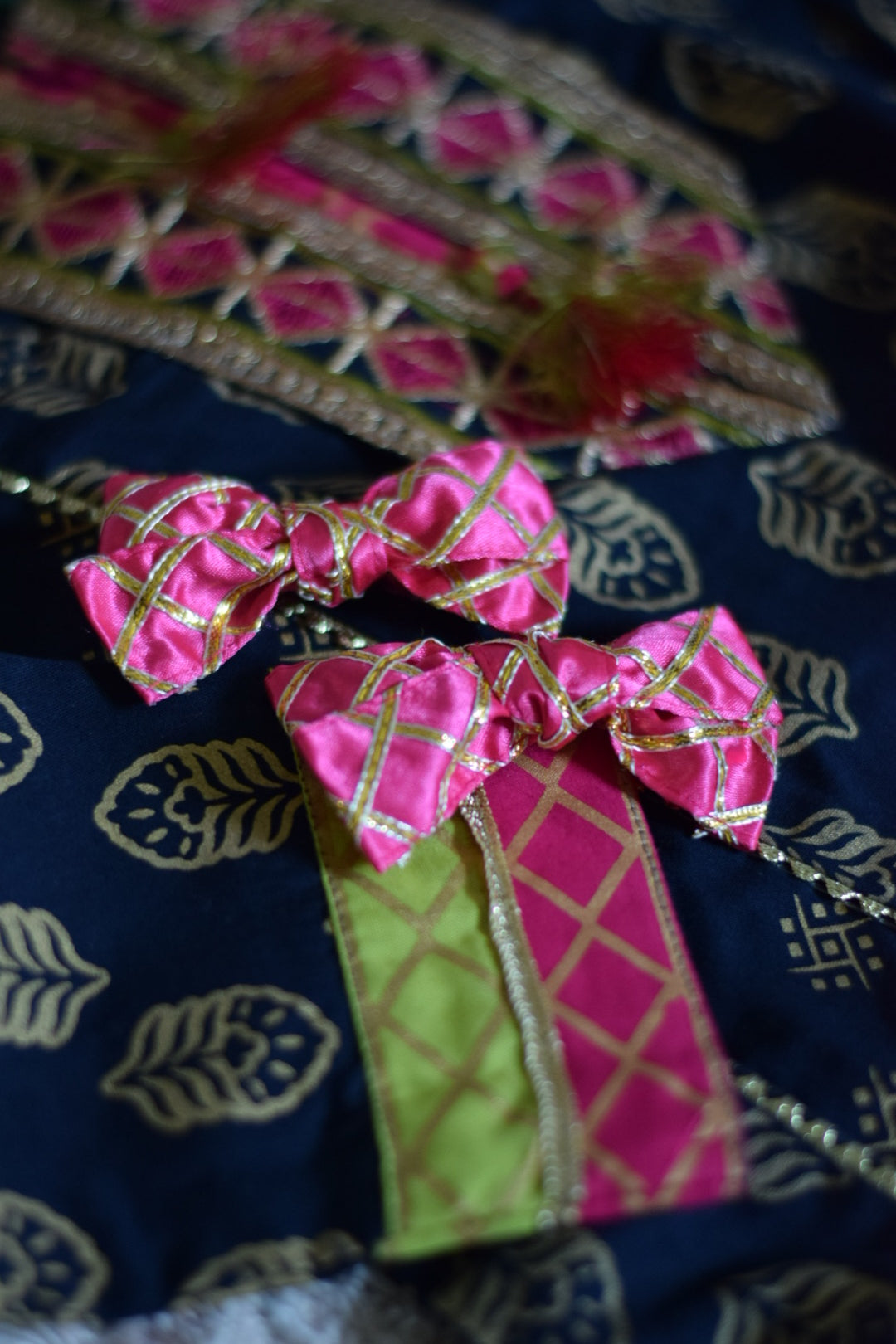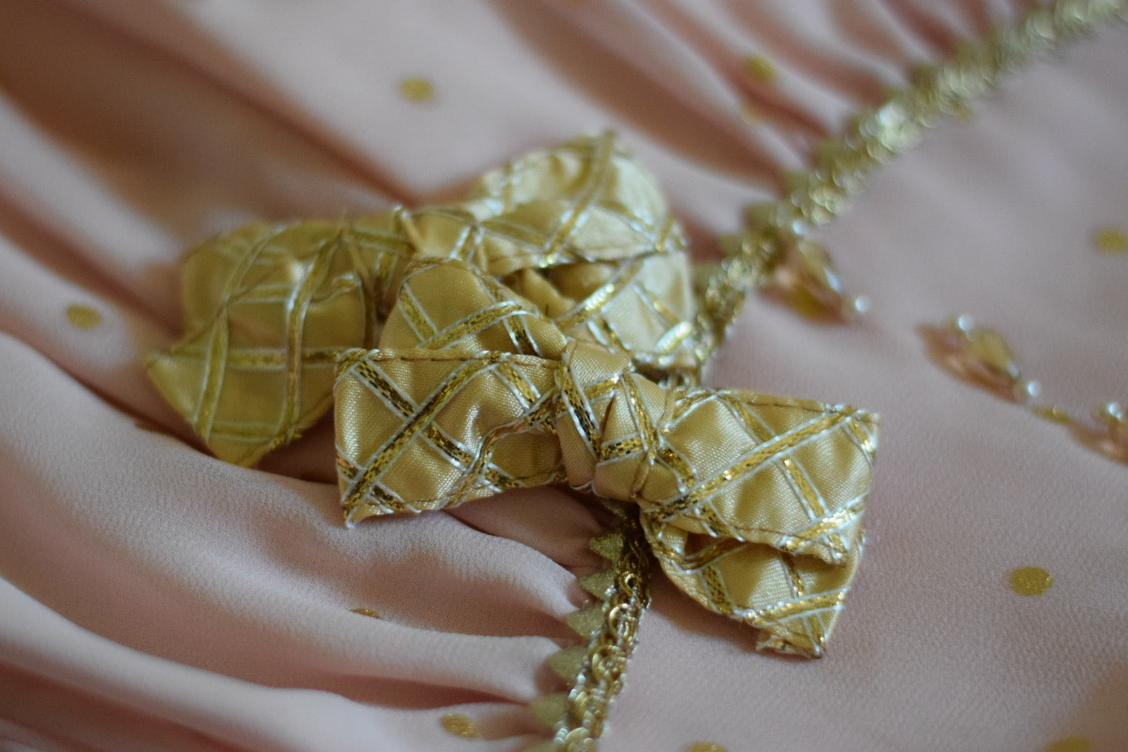Satin bows with cross hatch gold gota work