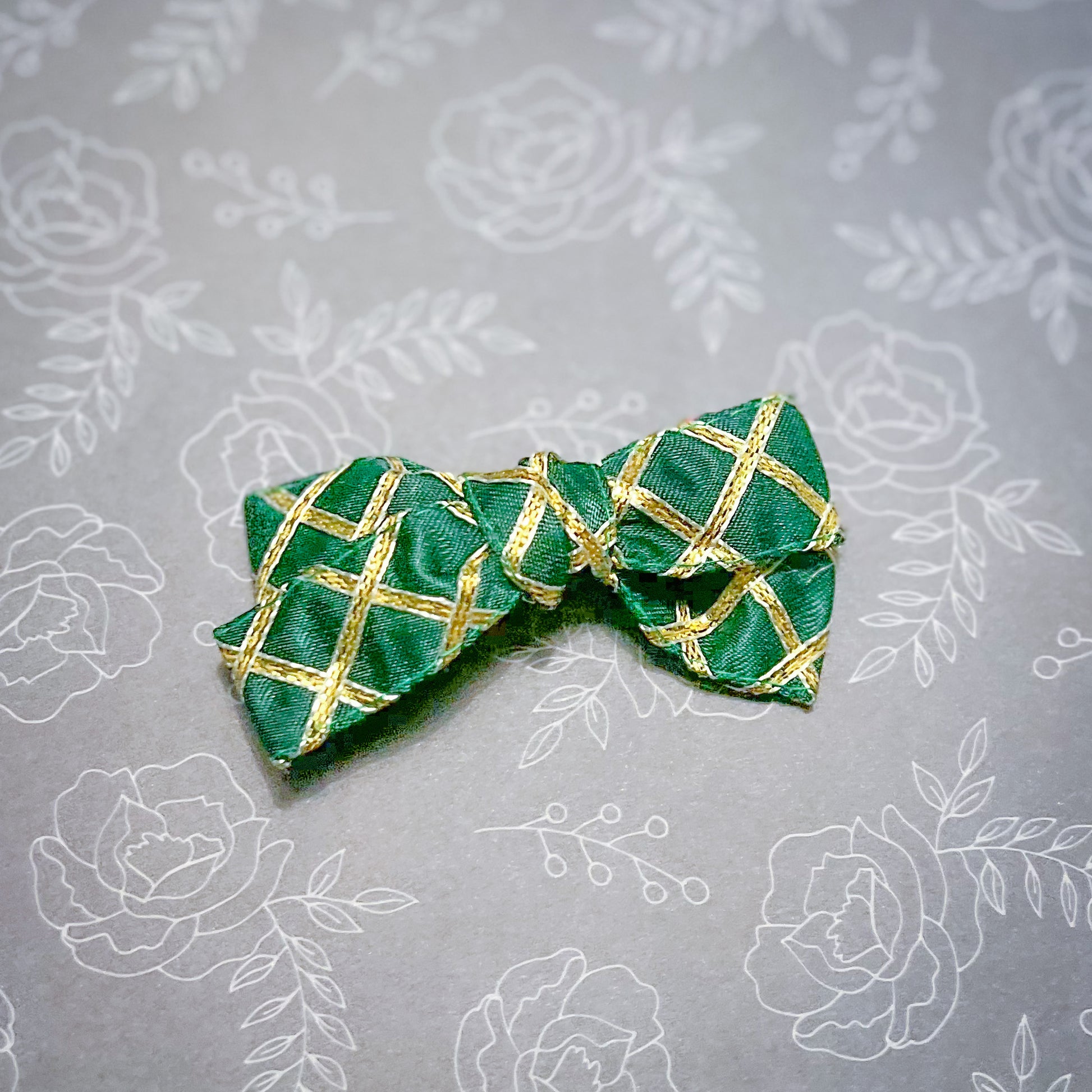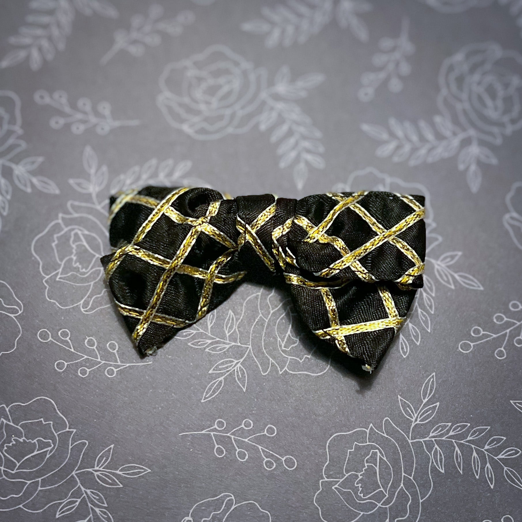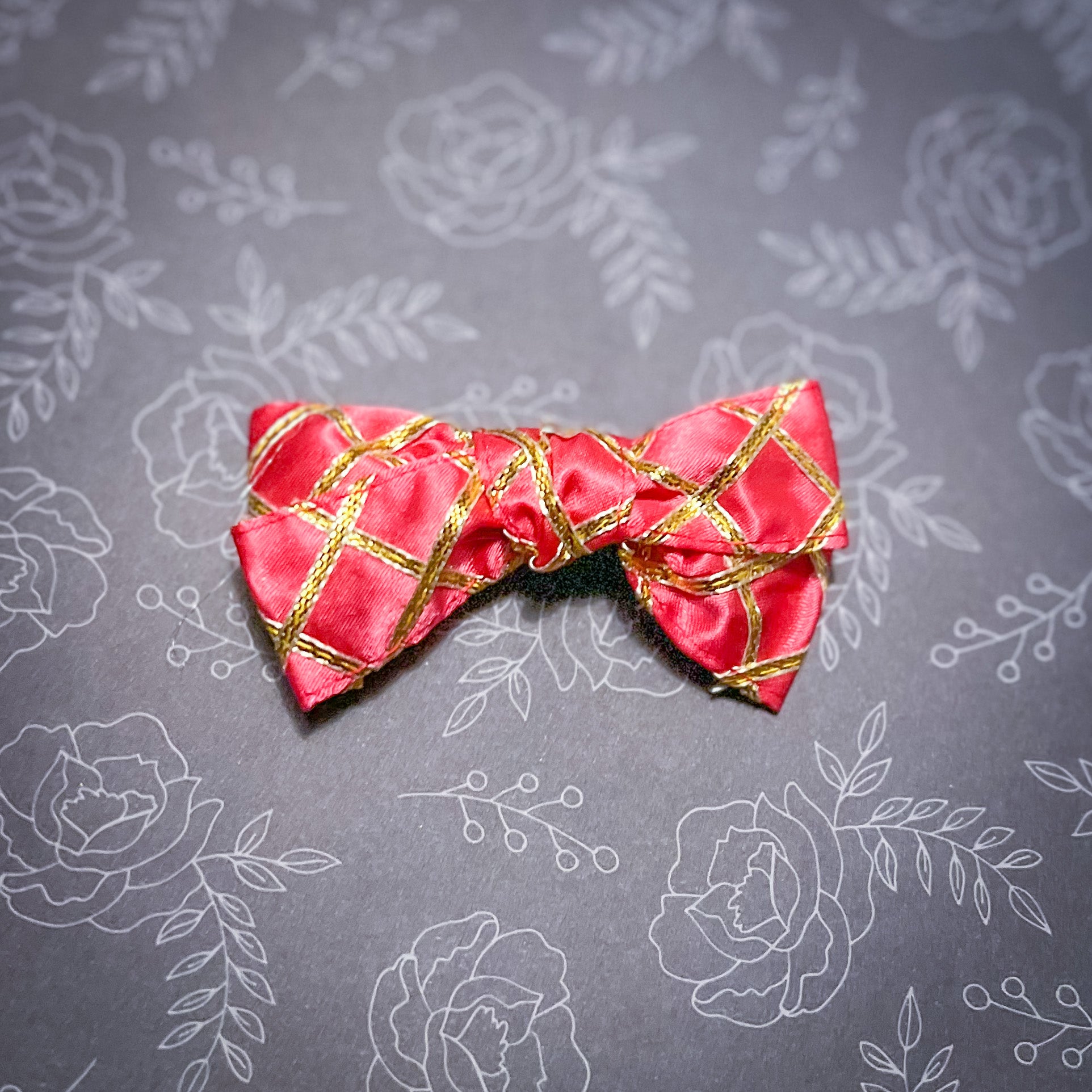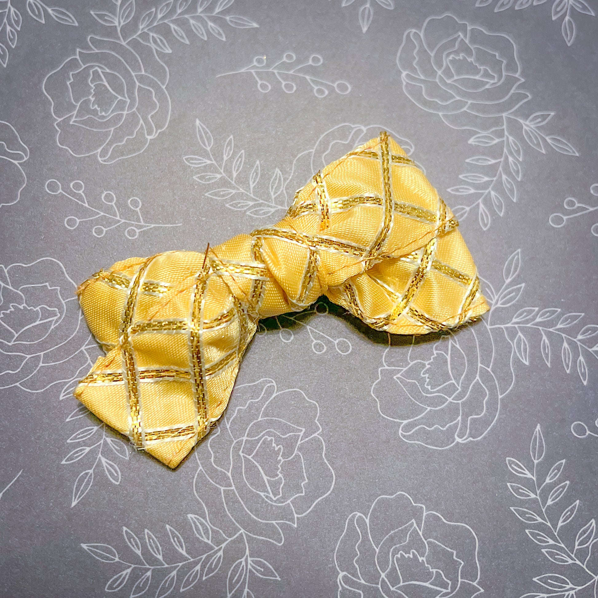 Satin bows with cross hatch gold gota work